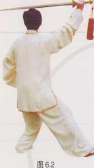 手剑指向后而上划弧上举于头前上方,掌心向前,掌指向右;眼视剑尖方 向(图6.3)。