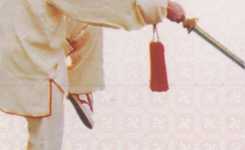 ② 右手剑后抡时,掌心斜向外,剑为立刃,力达剑上刃前端。