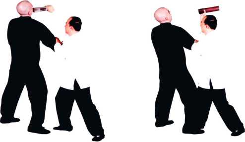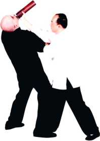 冲拳直打对方面门。我明为日字冲拳实际以钥匙刺向对方眼睛有标指之效。