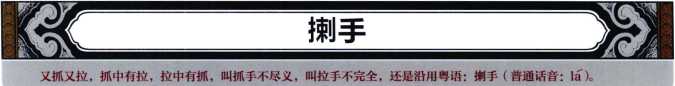 抓和拉的动作同时进行合二为一实战时抓的时候以手掌外侧为接触点。