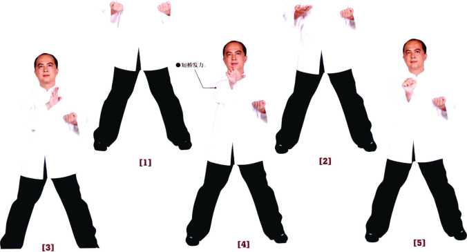 4前臂发力运劲于手掌外侧由胸前斜向上挥出掌心斜向下。