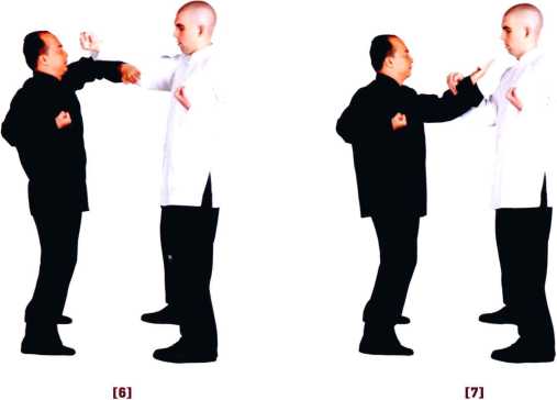 弟上摊下变圈手意欲甩手在师父桥下外门施展正掌击向师父而门师父伏手感知压力解脱立即变冲拳以直线击向对方胸口(直冲)此亦为甩手直冲之心法的另一应用。