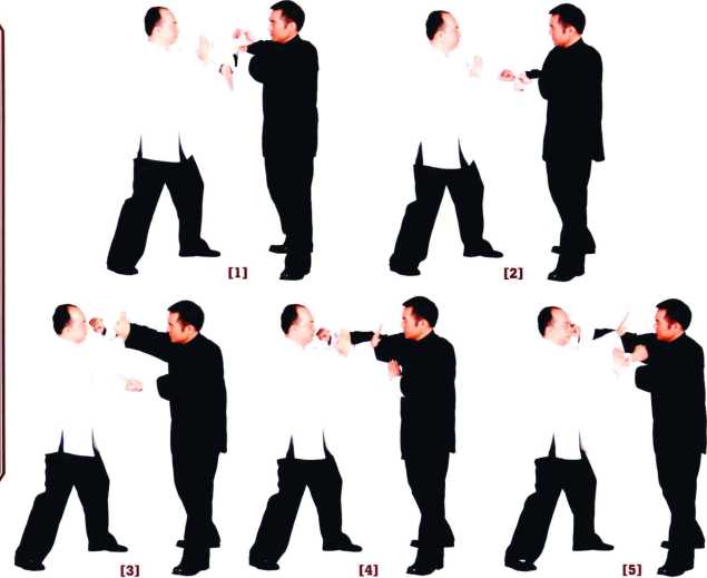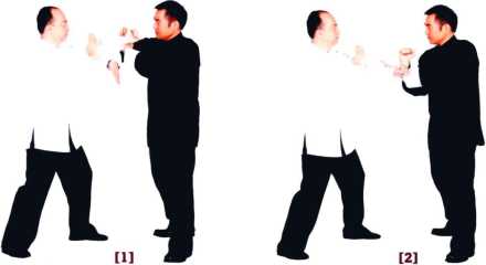 无情力控制时方右肘外门(占桥)左手立即冲拳直打对方侧面。