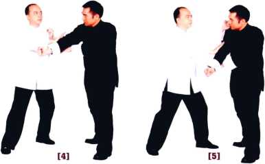 师父左手受制右护手立即起标手截击对方冲拳(封门)