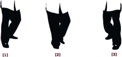 [3] 左脚经右脚内侧继续上前迈步身体随之右转左肘运动至前方