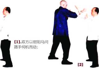 我以钳阳马问路手戒备看到对方脚影我右脚后撤成不?马侧身迎敌