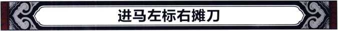150-152右脚提膝回收后在右前45°方向落地呈左坐马左刀自胸前标出直刺右手沉肘、翻腕令右刀做摊刀。