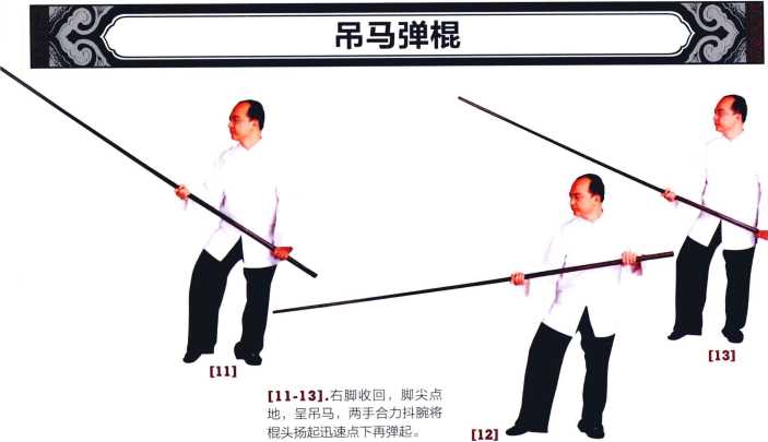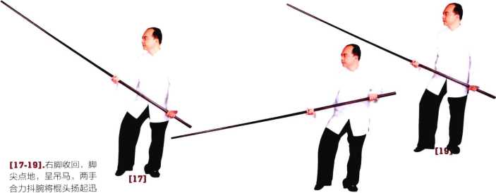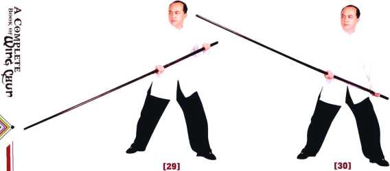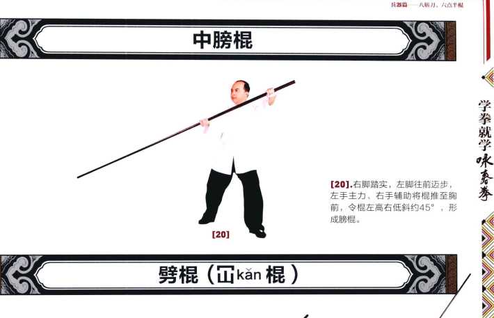 5-6两手合力将棍上提至下颌前然后猛力将棍垂直下沉手臂伸直。-7-8两肘运劲于两手腕将棍自下而上抽起高至下颌。9-10右脚往右开马成四平马腰向右转将棍向右方标出平刺右手大致伸直左肘贴胸。开步下标棍速点下再弹起。18学拳就学咏春杏-21212222232324242121222223232424