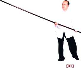 29-301两脚不动两手合力抖腕将棍头迅速点下再弹起。