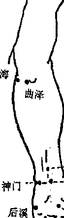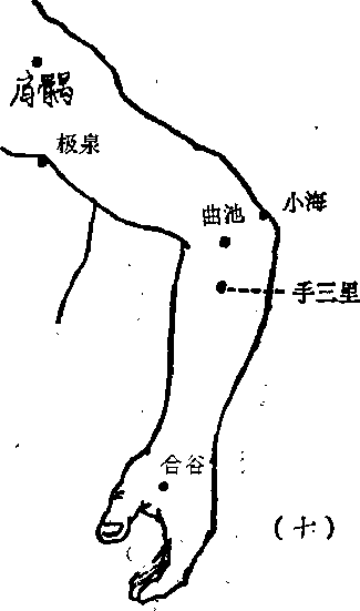 部位在肘上三寸10,消深(三焦)部位在上搏外面三角脱停止部之后下方一寸处
