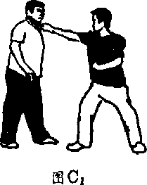 (2)乙方突然迸右步、出右手反胃抡刀横向甲右颈部削来(图)