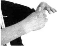 承卜势右手的拇指和食指捏捻左手小指的指端六至九次以忍痛为度目视双手(图3-17)