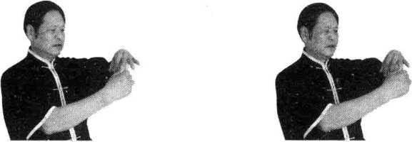 动作说明步型不变左掌提起张开用右手的拇指和食指捏捻左手的拇指尖六至九次以忍痛为度目视双手(图3-13)。