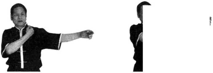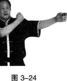 动作说明步型不变左手自然展开右手攥拳击打中府穴九次(图3-23)
