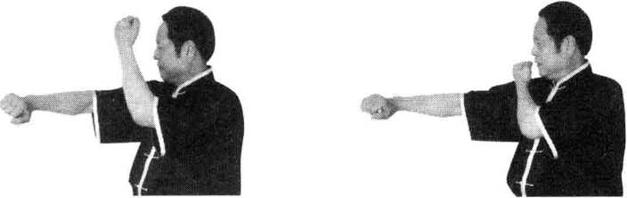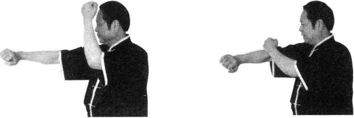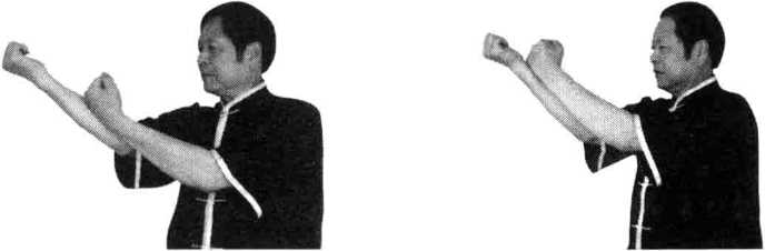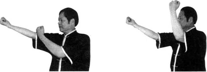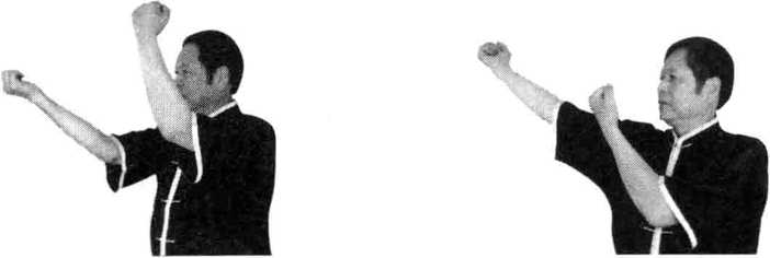 图3-90 图3-91图3-90 图3-91动作说明同击打天泉穴左势唯左右相反(图3-90、图3-91)。