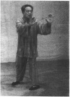 4. 近定式时,左手运转一小圈后还有一个上提的过程。右拳 在左肘内侧,不在肘下,如在肘下,则右肩紧,运转不灵。