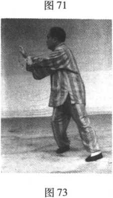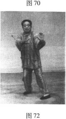 动作70、71、72、同动作18、19、20,唯方向不同,后者由西起做 动作,前者由西北起做动作。图70、71、72。