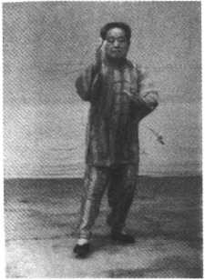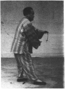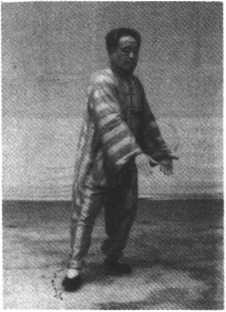 3. 此式的奥妙在于发沉劲。发沉劲时,要松腰胯,气沉丹田, 使劲由脚而腿而腰达于手,则对方受制,不得不失去握力。不能单 向后直拉手,直拉是两力相持,难以走化。
