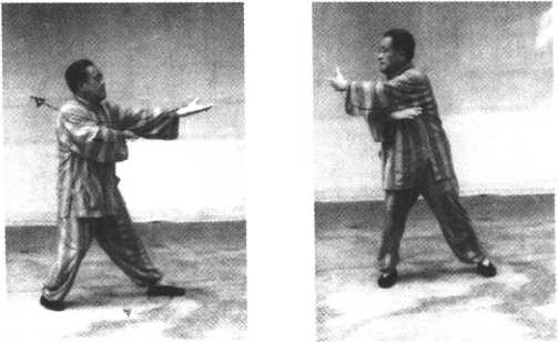 3-此式意念在两掌,劲点在腕和右脚跟处。