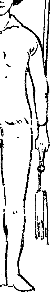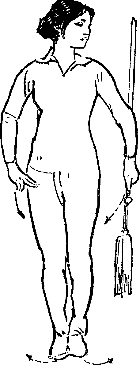 两脚尖分开,头转 正,目前视,两臂自然 下垂成立正姿势。(图 122)
