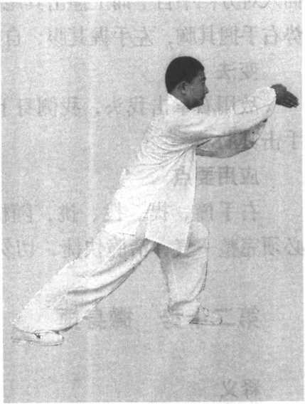 吴图南师爷说:“此势 务须完整一气,轻脆拨挑, 得机得势,方不至误学者。” 左脚向前迈步要平进,身体 切忌起伏。