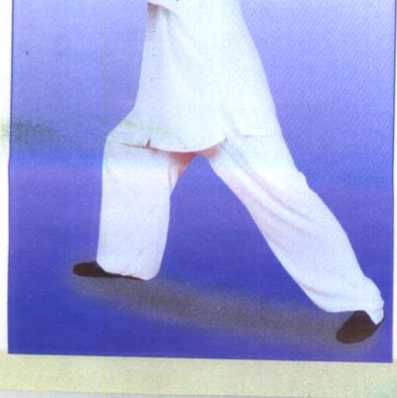 凡迈步(或撤步),必须分虚实,即以坐实之腿来控制所迈之步, 先以脚跟(或脚尖)轻着地,感到实了,然后再松脚腕,缓缓移动重心, 做到“迈步似猫行”;凡弓步,所弓之膝前不超过脚尖,后则以垂直于 脚跟为度,脚尖要正,膝与脚尖方向一致。后腿膝关节不能挺直,也不 能太屈,而应寓意于直中有松。两脚横向距离约肩宽,不能在一条直线 上。要圆,手臂不要前伸,肩关节不可前探,身体不可过于前仆,胯要沉 且开。