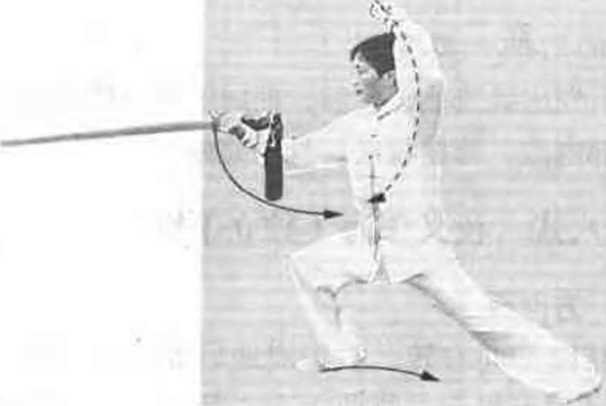 (3) 上下四动要保持上身正直,步法连贯,剑法圆满。