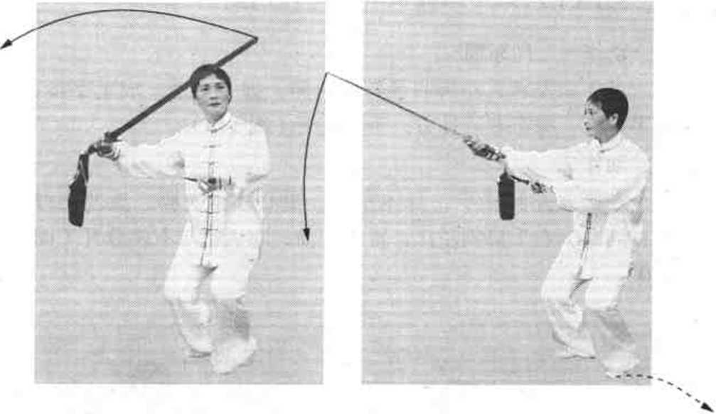 (2) 掌握三种剑法之外,还有虚步、侧弓步、移步、仆步 和弓步五种步法,与三种剑法相协调,必须做到上下相随。