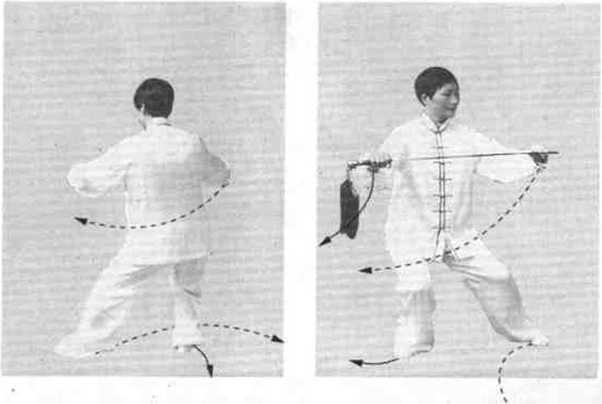 (3) 在转身之间,臀部平弧转动,不要摆扭,达到上下连 贯,沉着稳重。