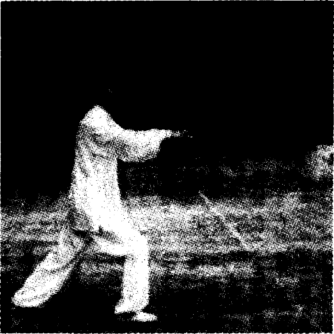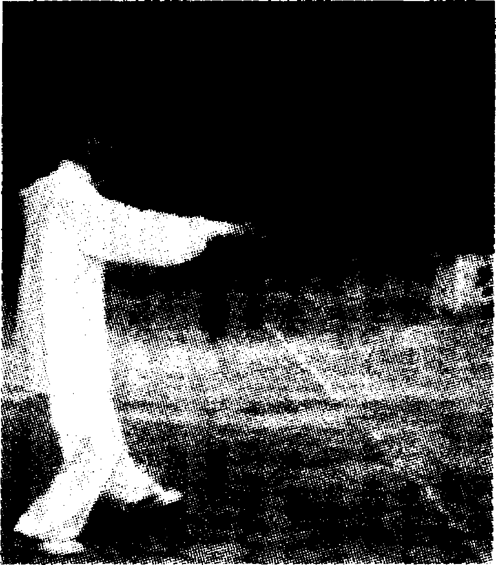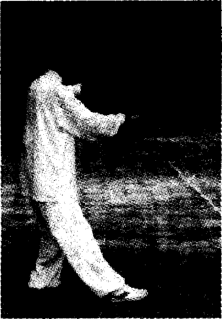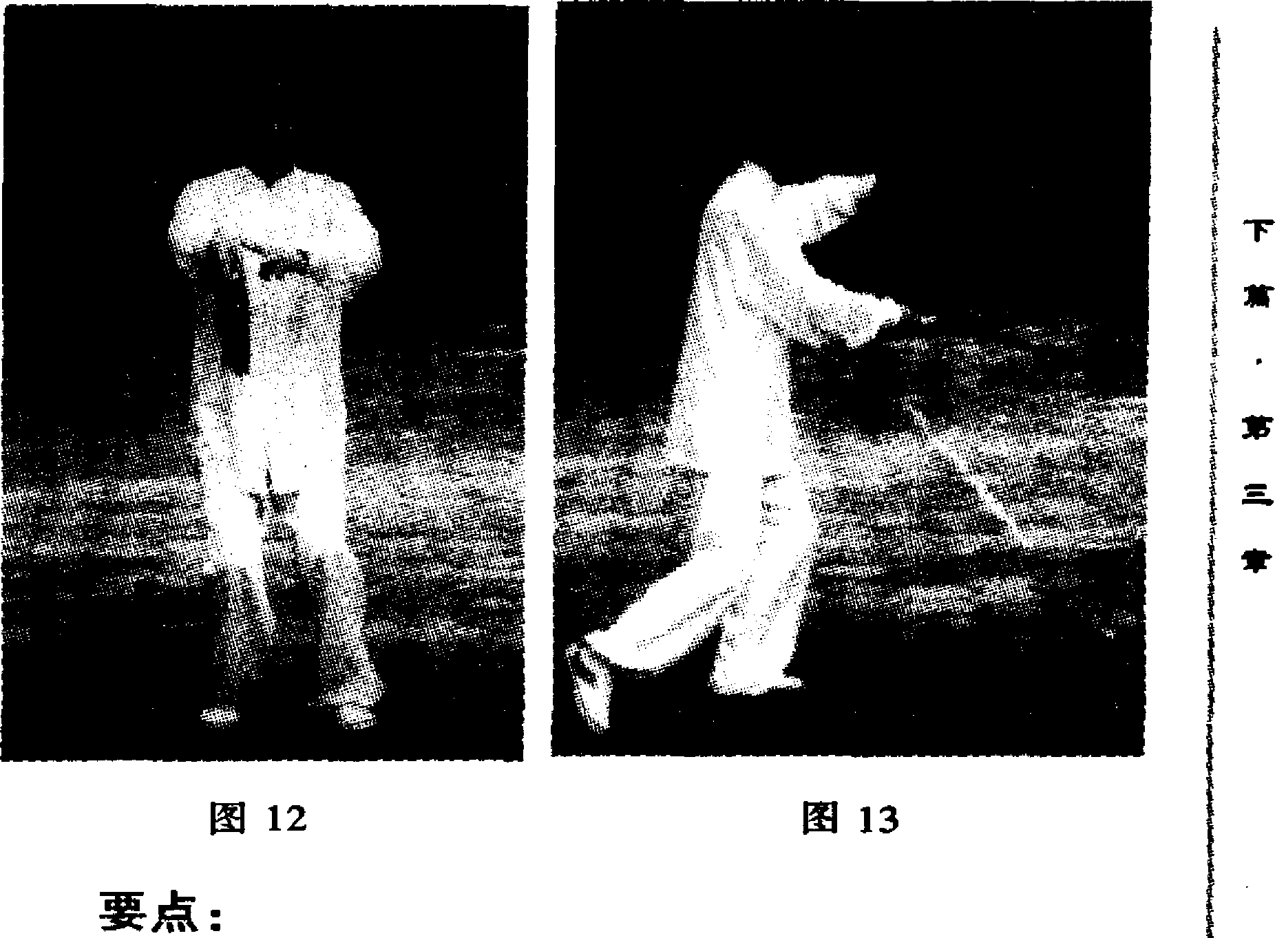 2. 右脚经左脚内侧 向正东方向迈步,脚跟着 地;左剑指稍下沉?,右手持 剑略前移(图14)。