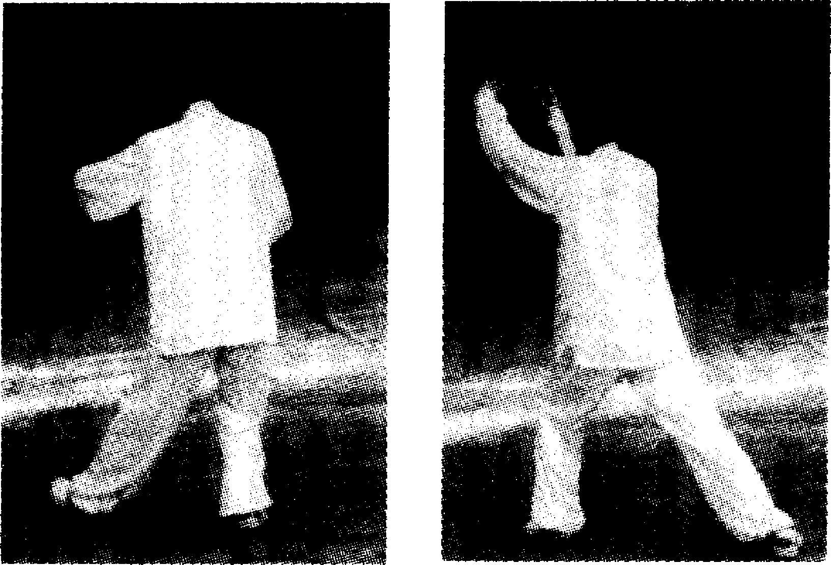 1. 腰向右转,重心后移至左脚,右脚尖上翘;同 时,右臂内旋,右手持剑,翻转置于右腰外方,呈平 剑;左剑指弧形前转至腹前(图49)。