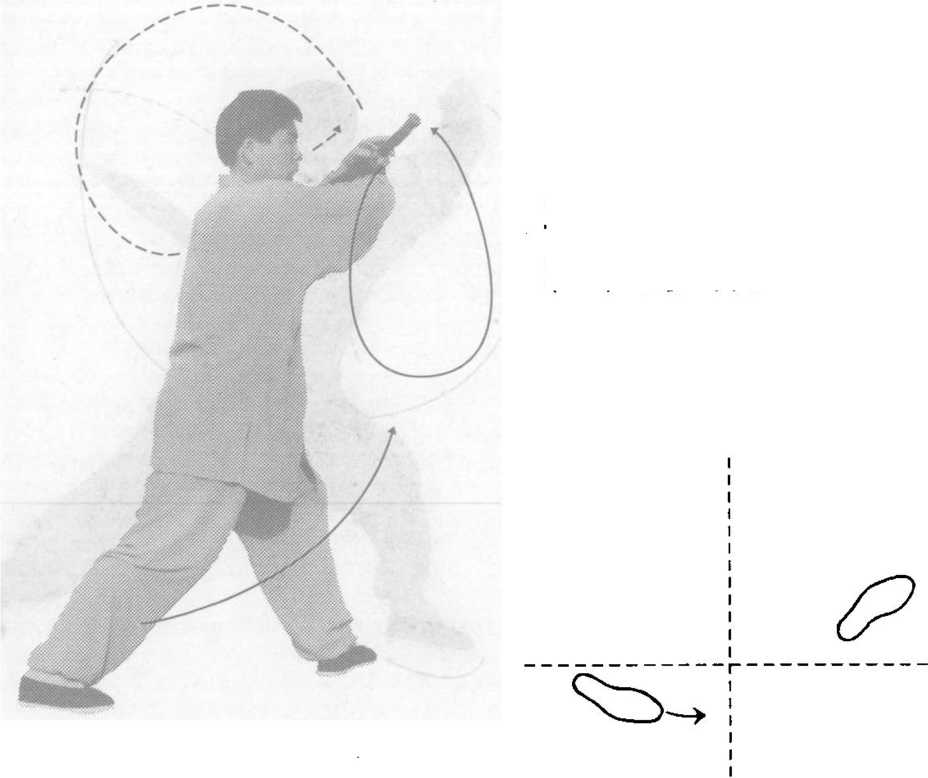 防止:步子形成后,才进行摆臂贯拳。两臂左摆时没有循 弧线。
