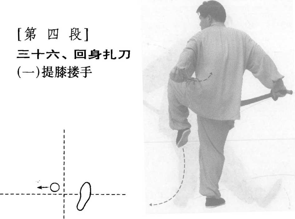 攻防含义:身体贴近对方,转身带刀,以刀刃划对方腰 部。