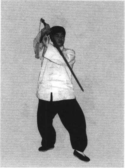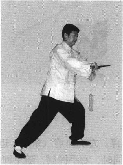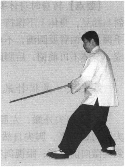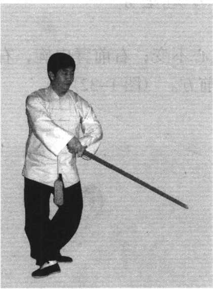 1.身体重心不变;右前臂内旋,右手握剑, 心向下;眼视前方。(图1-32)