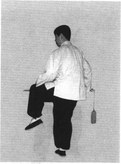 右腿站立要稳,不可摇晃与歪斜。两手臂要圆,肩部要 放松,不可紧张。两肘要下垂,不可向上翘肘。