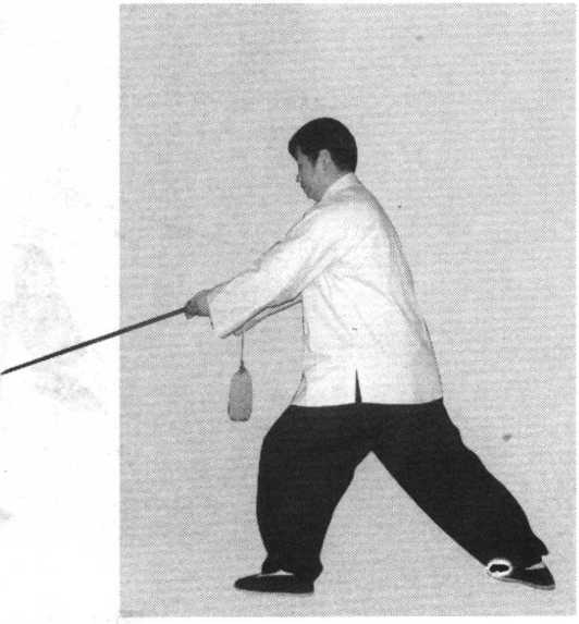 J斜与摇晃,身体上下保持一条线,落脚方向要正确。两 I手握剑时两臂要圆满,不可太直。刺剑要与弓步同时完 ;成,身体不可前俯,后脚跟不可抬起。