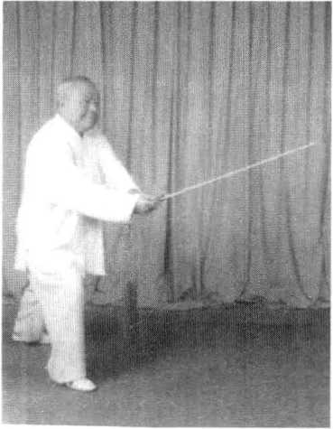 由刺腹或膝,转用仰手平剑向上崩起,直刺咽喉。