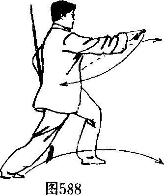 与肩平。眼随剑指。(图587.588)