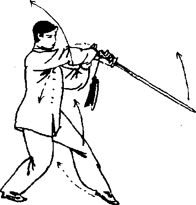 [要 点]转体灵活、稳健,俯身前刺,快捷有力,力达剑 尖。