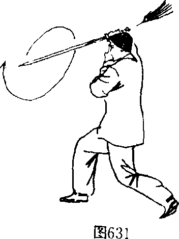 左手剑指随之附于右手腕上。目视前方「(图632)