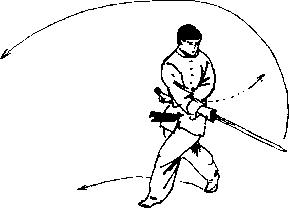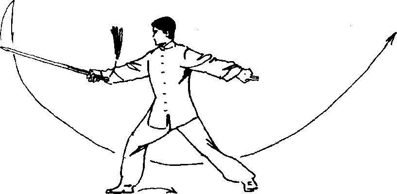 [要 点]立圆轮剑,手臂伸直,松肩放肘,舒展大方。、 剑走弧形,力达剑尖。