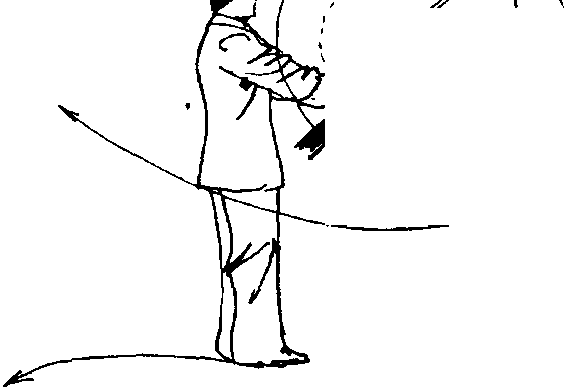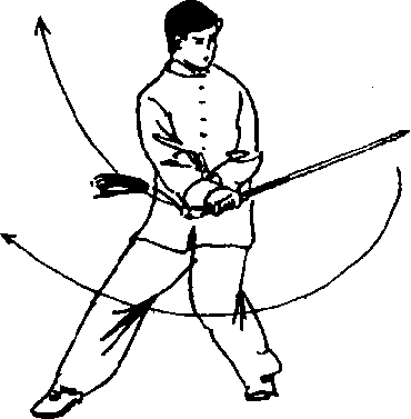 [要点]动作要舒展、大方,弧度可大,立圆划弧,力达 剑刃前段。拧腰旋劲,转腕带剑。