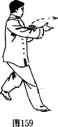 掌心对脚面。目视右脚。(图157)