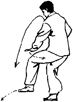[要 点]落步轻灵,俯身沉劲,含胸收腹,左肩向后上 掀,右肩向下前送。力达拳面。