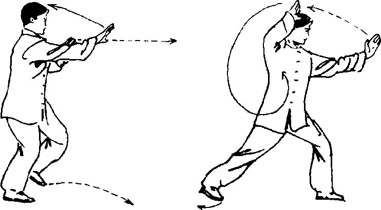 [要点]身体稳立,展胸、收腹、敛臀,迈步、转体与推 掌同时进行,协调一致。