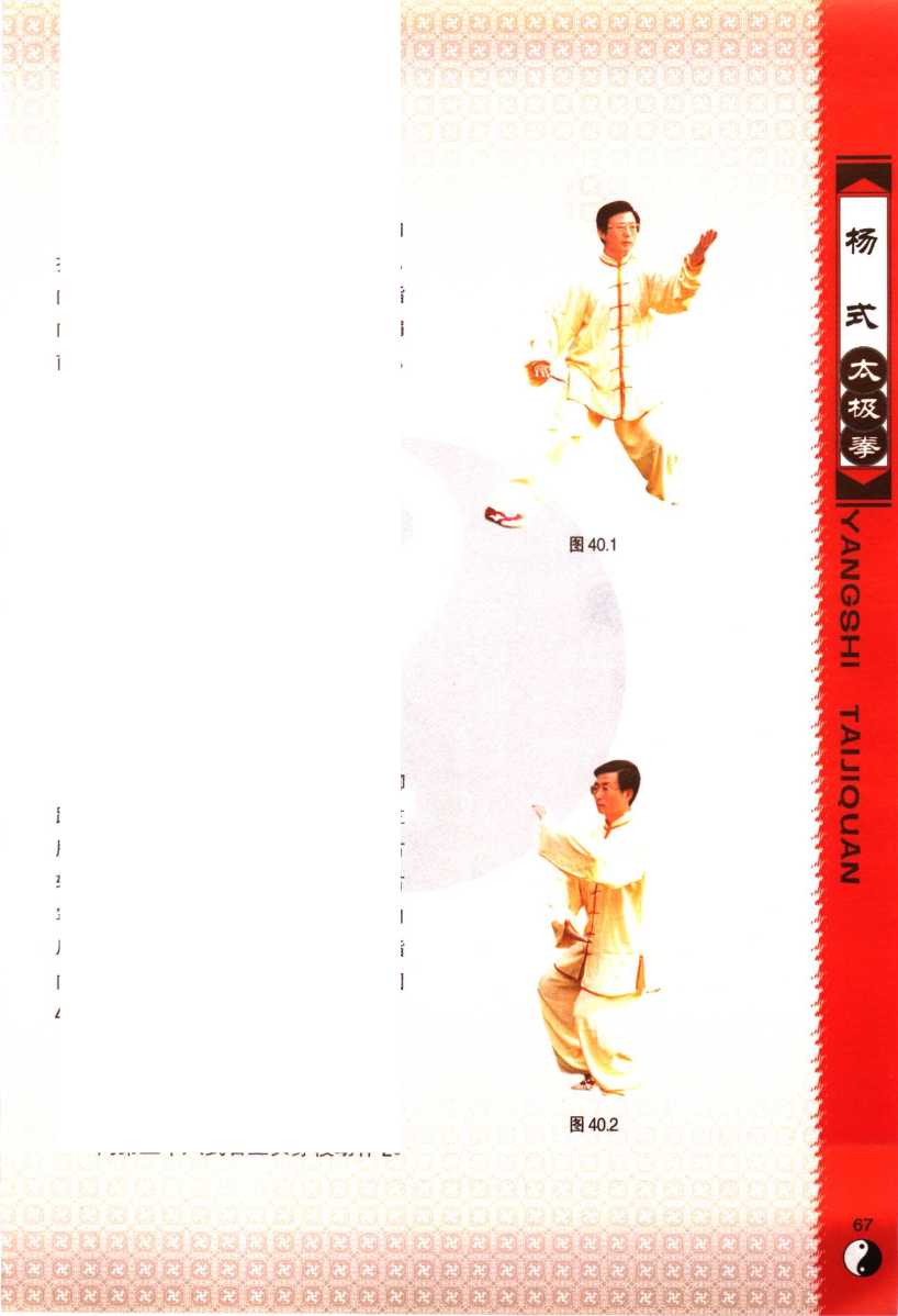 图 39.1图 39.1OZQOTI- TAZ-QUANOZQOTI- TAZ-QUAN65G65G左脚跟向内拧转角度以30度为 宜;右脚迈出与双掌动作均以腰转为 主,动作应协调连贯。