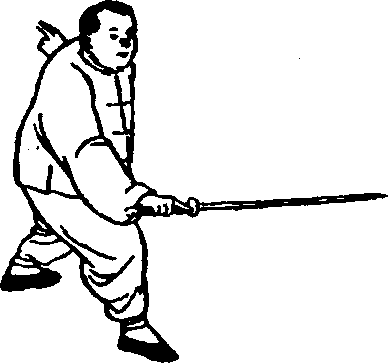 【要领】注意动作次序,剑要随身势腰腿动作而动。顶悬身 正,尾闾收住。