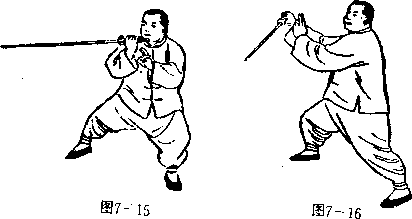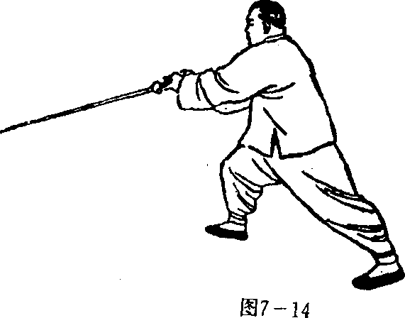 向前往下平刺。目视前方。(图7-14)