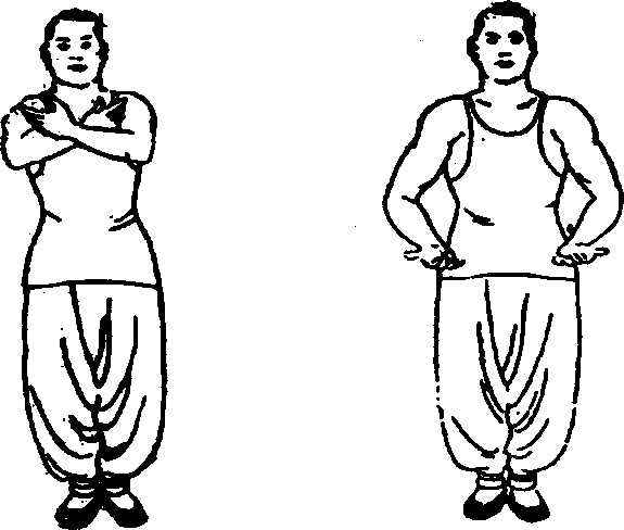 在练完全套健身运气法(或全套太极拳、推手或大捋等) 后,如果加行此放松式,对于周身气血流通,心身舒畅,非常有 益。具体练法如下: