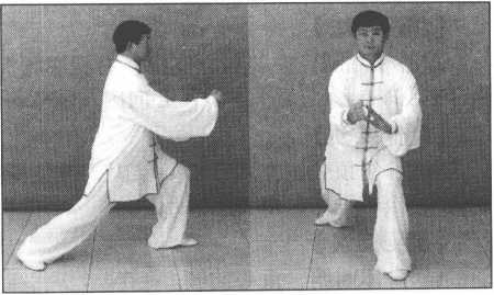 .做此动作,右臂要边内旋,右拳边打出,意贯拳面。左掌的弧形回收,动作要圆 活,意贯左臂外下侧,是挪劲。立身中正,松肩沉肘,涵胸拔背,双臂撑圆,右腿之力 要于脚、于腿、于腰达于拳面。要体会拳谚所云:“蓄劲如开弓,发劲如放箭。屈中求 直,蓄而后发。”